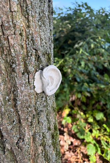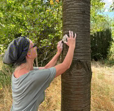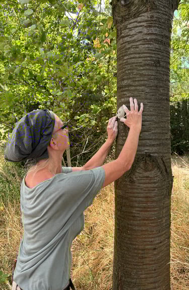 Und ganz nebenbei ist beim Fällen der Essigbäume ein kleines "Baumstammtor" frei geworden, das aussieht, als würde es in eine Märchenwelt entführen, schaut selbst auf den Bildern... Vielleicht können wir das noch als Element einbauen in den Garten Kunterbunt...