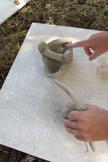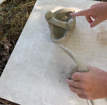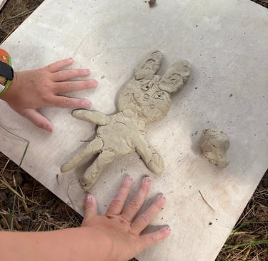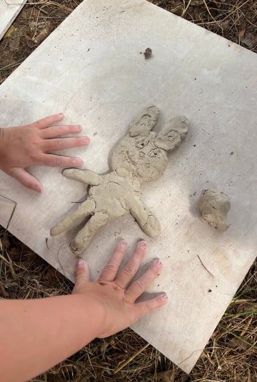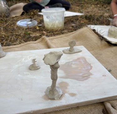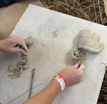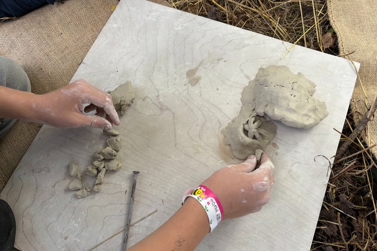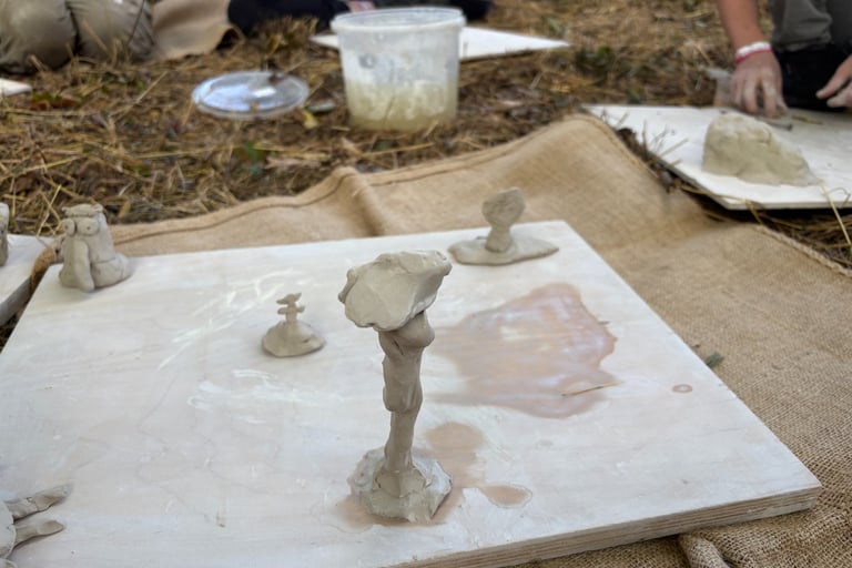 Kreatives Arbeiten mit Ton in unserem Kunstlabor unter dem großen Ahorn