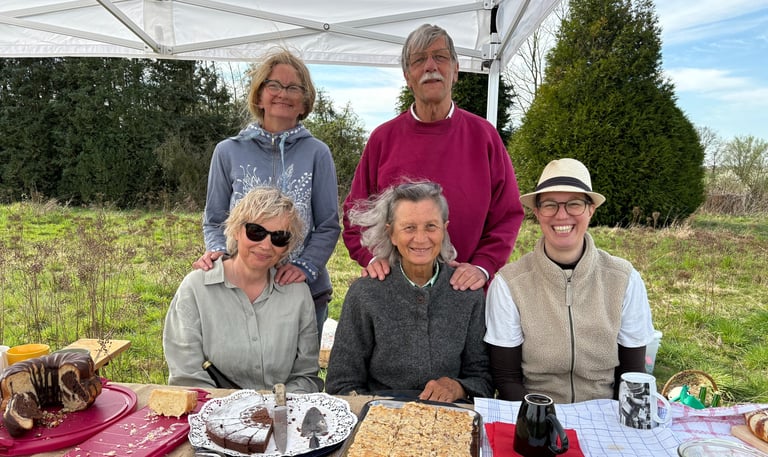 Für Getränke (Kaffee, Wasser und leckerer, selbstgepresster Streuobst-Apfelsaft) und Verpflegung (Kuchen, frisches Brot und selbstgemachte Kräuterbutter) ist gesorgt.